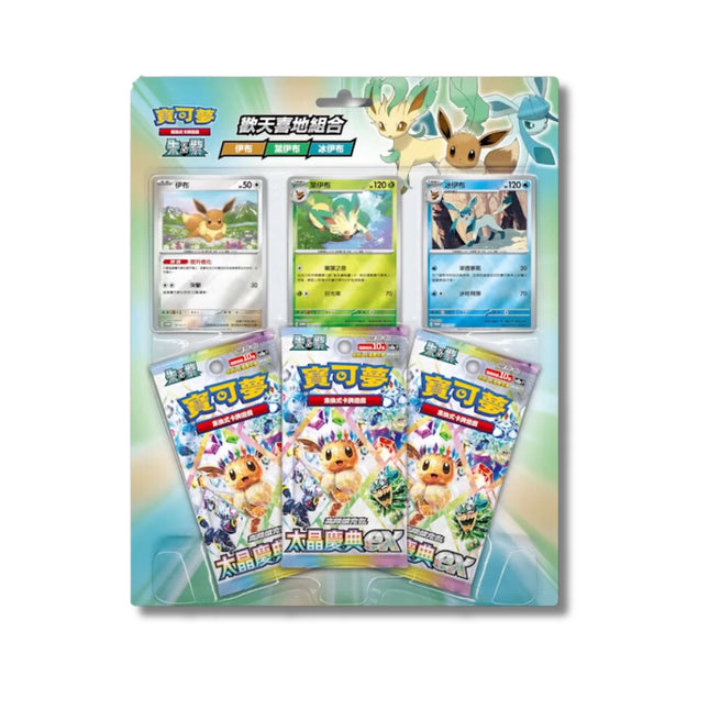 [Traditional Chinese] Eeveelution Terastal Festival ex Pokémon Special Blister - Green Set - Eevee Leafeon Glaceon  This item can not be cancelled after ordering. This Pokémon Scarlet & Violet Eeveelution Terastal Festival ex Pokémon Special Blister comes in 4 types: Pink Set - Espeon Umbreon Sylveon Green Set - Eevee Leafeon Glaceon Yellow Set - Vaporeon Jolteon Flareon Eeveelution family booklet set Each set features special promo cards and Terastal Festival booster packs. Collect them all and shop the full bundle set to get value deals .  📦 What’s Inside? Condition New & Factory Sealed Language Green Set - Eevee Leafeon Glaceon Promo cards - Eevee Leafeon Glaceon(3 total) Booster Packs - 3x Terastal Festival ex Release Date The release date has been changed to 22 January 2025, instead of 17 January 2025 as originally announced. Shipping 3-5 days after release date