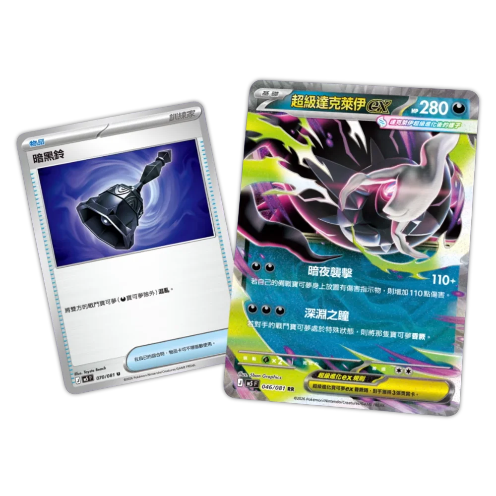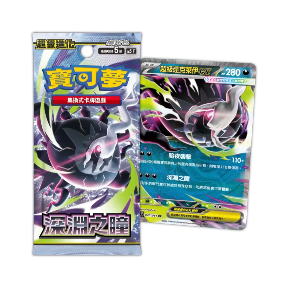 The Traditional Chinese Pokémon Mega Abyss Eye M5F Booster Box features the highly anticipated Mega Darkrai ex as its headline chase card, making it a standout pick for Pokémon TCG collectors and competitive players alike. This is the Traditional Chinese edition, released separately from the Japanese version, with distinct print and regional distribution.